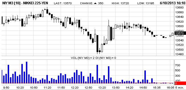 チャートは4:10で終わっているので、この時点では13,570円なのですが、その後の5分間で下落したようです。