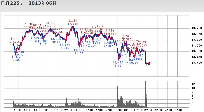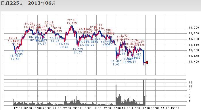 ミニについては朝の寄付きよりも昼前の急落時の方が出来高が増えています。