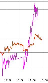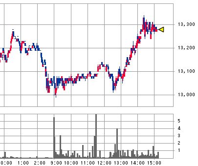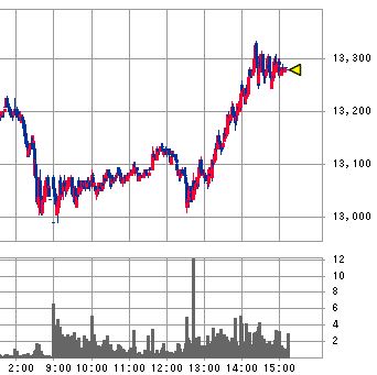 昨晩のシカゴ日経平均の終値が12,980円だったにも拘らず、朝の寄り付きはそれより120円以上高く始まりましたね。