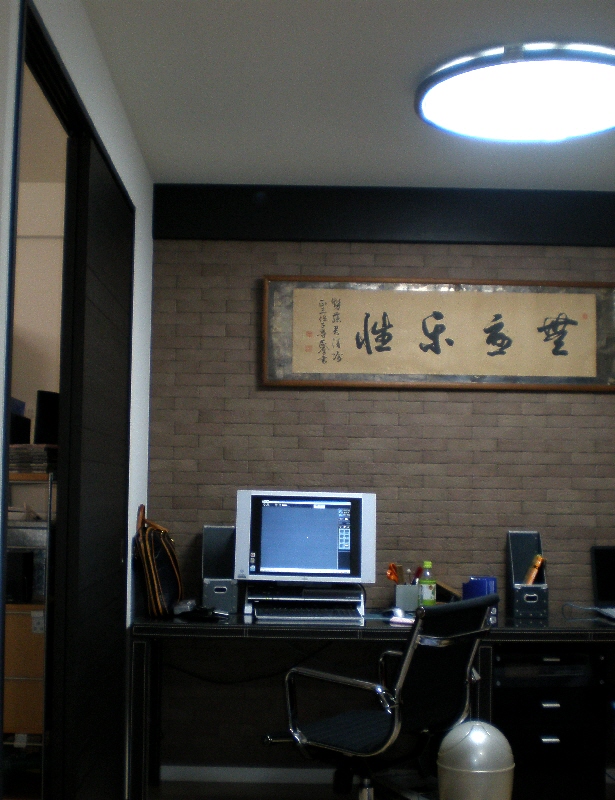 パソコンより、上にかけてある、額が気になってしまいました。ごめんなさい・・・。