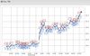ただ、東証の時間帯を終えた後も円安ドル高は継続しており、16:00過ぎには97.7円近辺まで進んでいますので、今日のNYダウが大幅な続落とならなければ、明日の日経平均などの日本の株価は続落にはならず、値を戻して行かないかと期待しております。