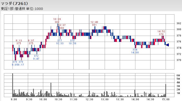 97円台まで突入した円安ドル高は東証の時間帯中もほぼ右肩上がりにドル高となっていますが、NYダウや中国などの株安効果の方が上回ってしまったようです。