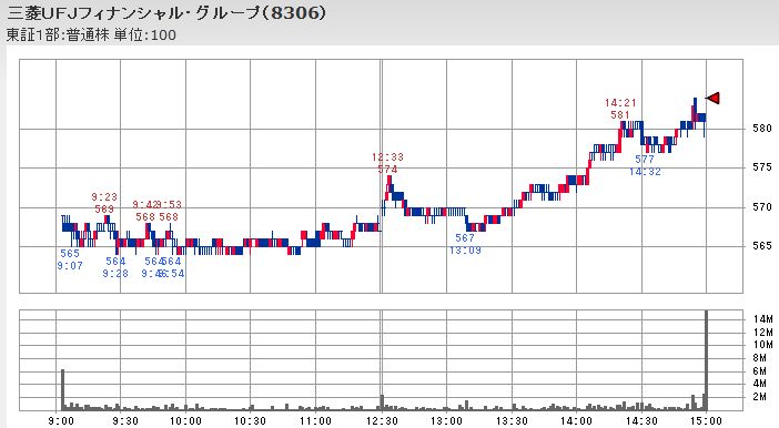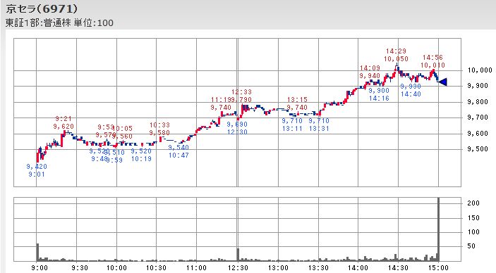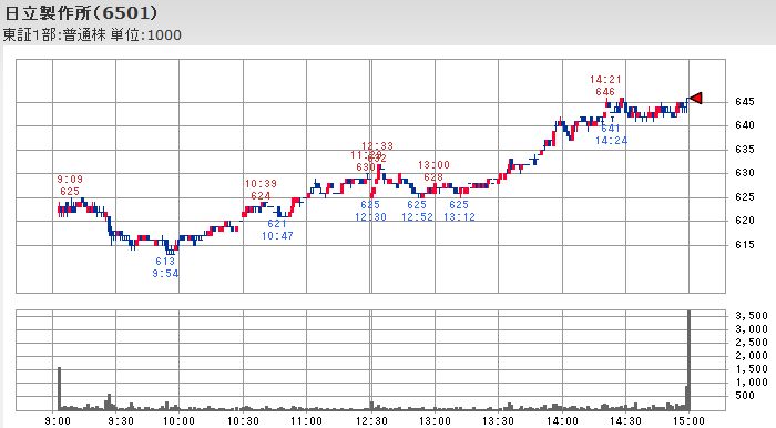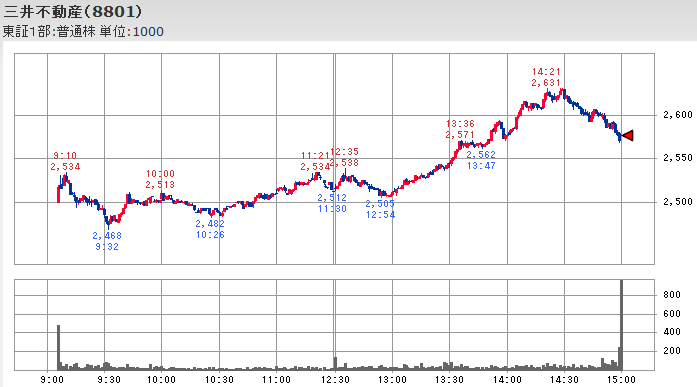 こうした日経平均が停滞していた時間中の値動きを見るとファナックが12;33に付けたその時点までの本日の最高値から200円近く下落し、自動車株を中心とする輸出銘柄も同様に値を崩して平均株価の足を引っ張っていたのですが、不動産大手の株価は12:53頃に後場の最安値を付けた後再び上昇して平均株価を下支えする形となっており、主役を交代しながら平均株価が維持されることで値戻しが幅広い銘柄に広がる傾向になっていたようです。