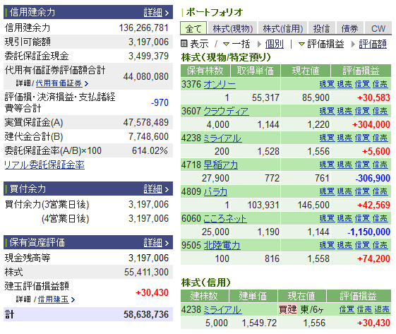 とは言え,まだ信用残がそれ程減ってないのが気になるんだよなぁ。