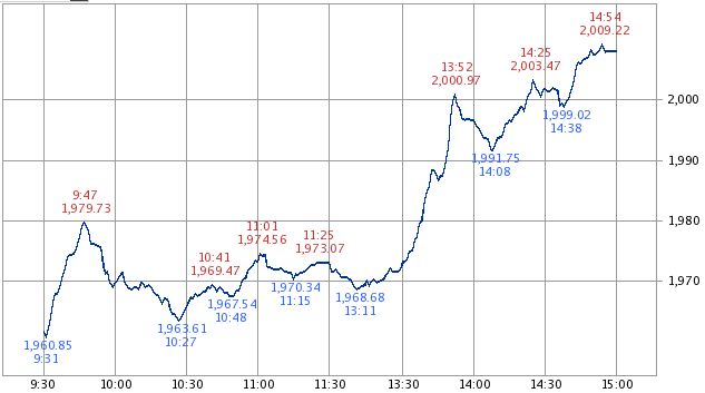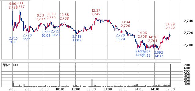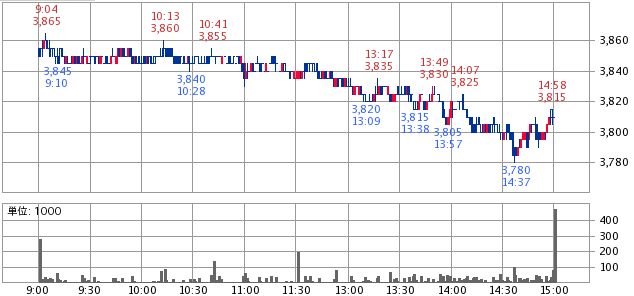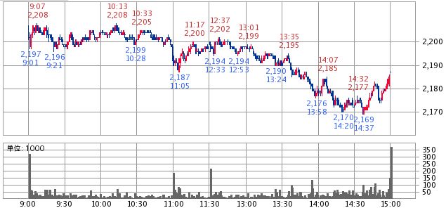 なお、売買代金で見ると、東証1部が前日の2.36兆円から本日が2.89兆円、大証1部が前日の287.73億円から本日が318.79億円と大型株は薄商いの状況が続いているとはいえ、取引が膨らむ形となっています。