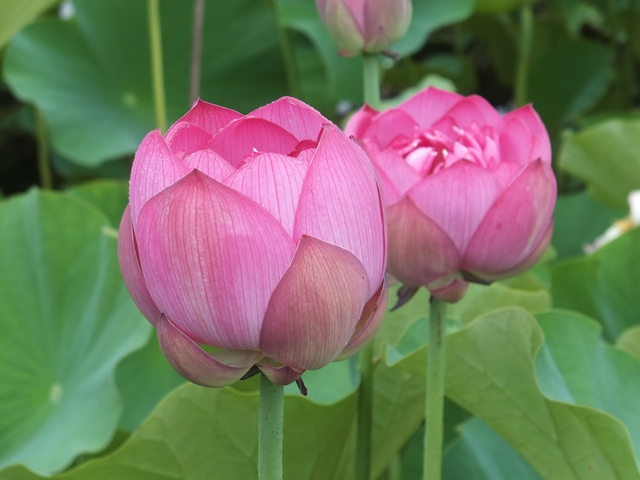 どんよりと曇った朝ですが山へ向かう途中の蓮の池に立ち寄り蓮の花の写真をとりました