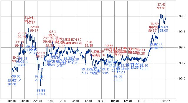 米ドル/円100.05 +0.77