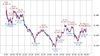 昨晩のシカゴ日経平均先物はNYダウが下落したため、シカゴ時間16:10(NY時間17:10、日本時間6:10)で14,525円(前日:14,695円、東証終値14,599.12円、東証終値比-74円)とNYダウより大きく下落しています。