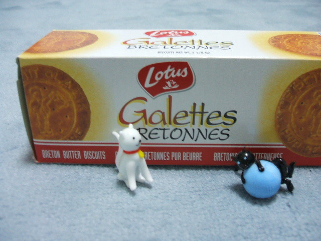 これがそのガレット。ビスケットみたいな形ですが、味はもっと濃く、バターたっぷりのパイみたいです。以前頂いてとてもおいしかったので、こんどPTAの会合に持参して宣伝してこよっと。もっとも、カロリーは高そうですが。