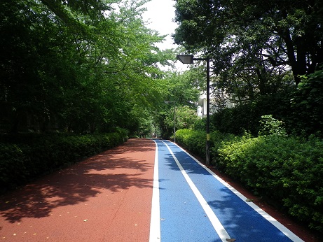 ↑駒沢公園内のサイクリングコース。この辺もセミの声がものすごい