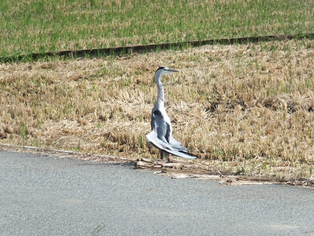 朝、山へ向かって進んでいるとアオサギのだらしない格好を見ることがあります