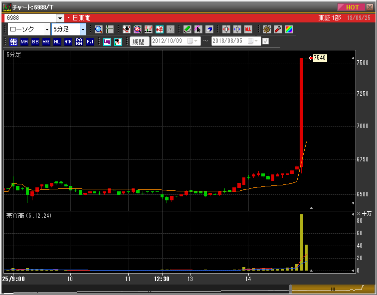 しかし日経平均組み入れが影響したのか、日東電工は引け際に逆行しいきなりストップ高となった。