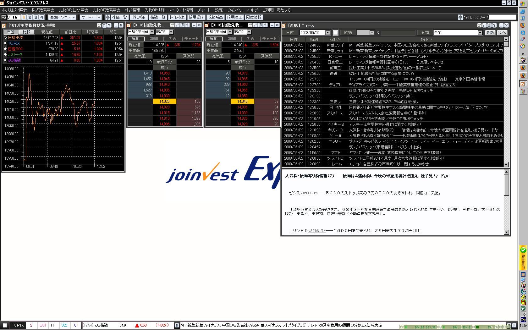 携帯では大和証券の「ダイワ使えるチャート」を見ています。板も1本ずつですが見れますし、決定ボタン押せばリアルタイムで更新されますから、決定ボタン連打でリアルタイム情報が得られます。まあ、普段は仕事の合い間にチェックするだけですけどね。