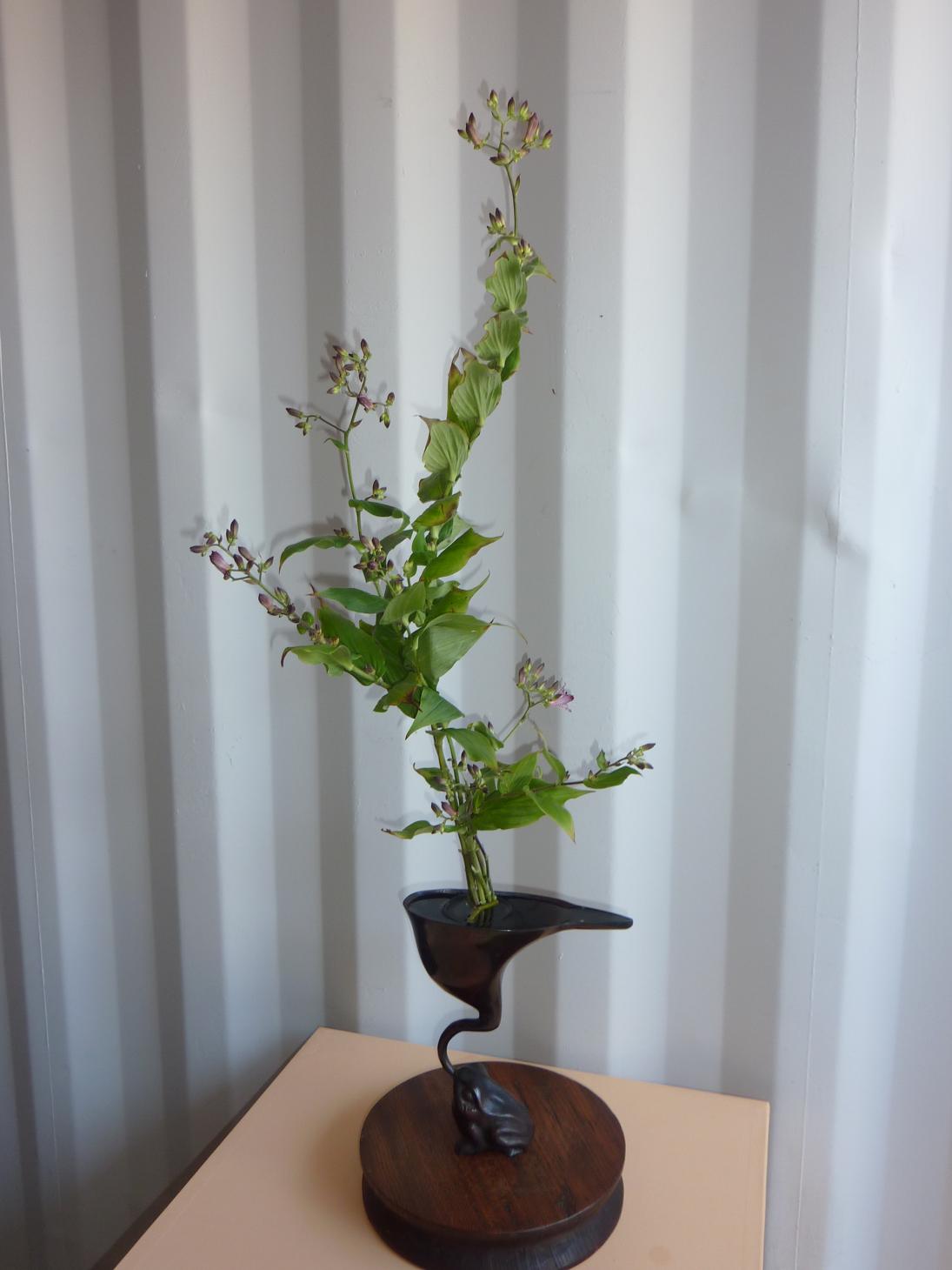 (右) いけばな野外展 小原流 (バイクは川重のものでした)