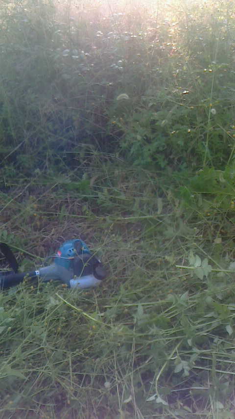 右に左に腰を振って草刈り機を使うと肩は痛いし腰はうずくし、老人殺しの作業です。