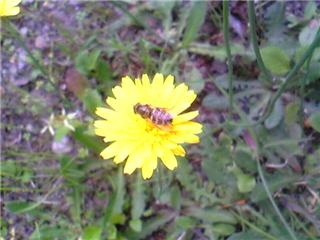 暖かくなってハナアブが出てきました。いろんな花の実をつけるアブですが、日本古来のものは淘汰され、外来アブが多くなりました。しかし、農家の省人化には欠かせません。このタンポポも外来種のようですが何でしょう。