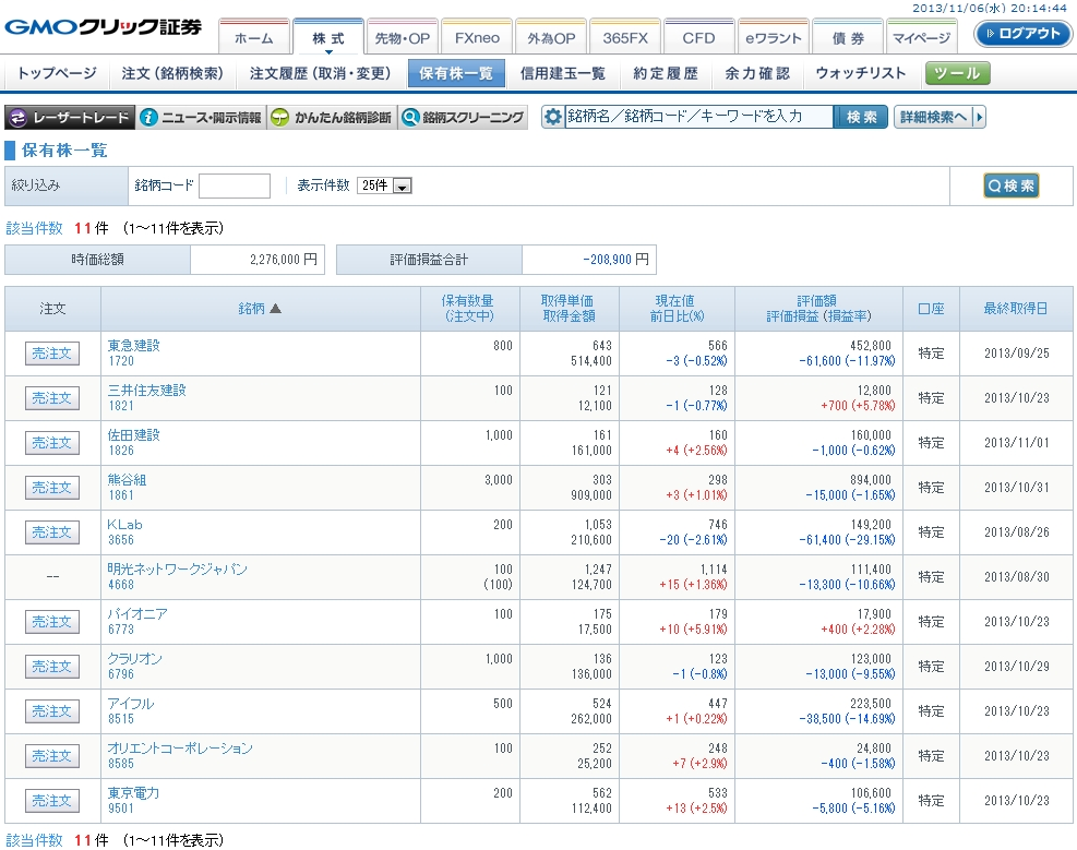 というわけで、久々に株ネタ。なんか知らないうちに含み損MAX状態なんですが・・・゚ヽ(●゚´Д`゚●)ノ゚。ウワァァァン!! まぁ知らないっていうのは嘘なんですけどね・・・。知りつつも見てみぬふりをしていたらこうなっていたっていう・・・。