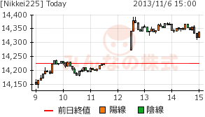 ついでに、三角の頂点を考慮して明日の値幅は14150円~14350円。これを超えたら放たれそうという、チャートになっている。