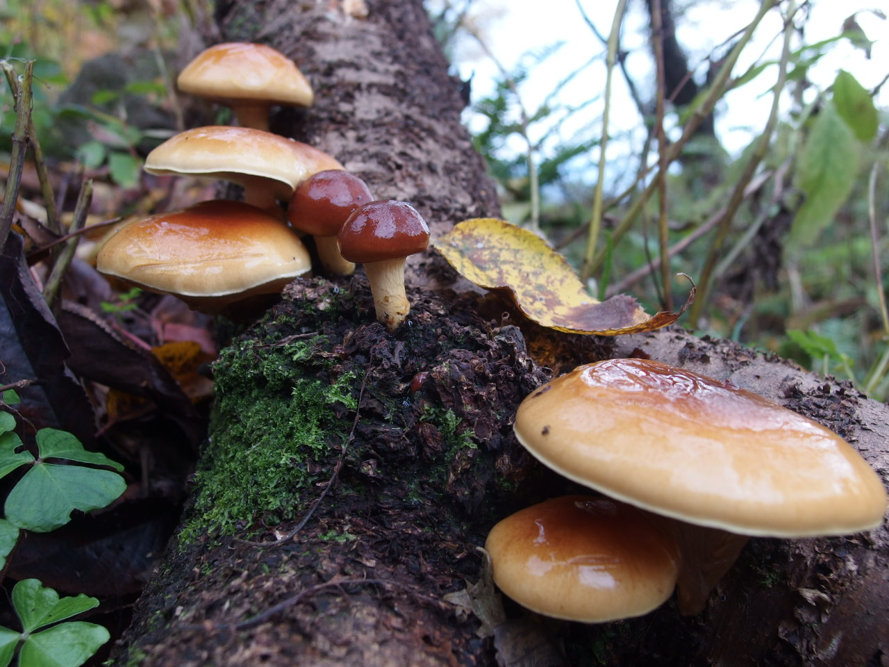 アベマキの幹にブナシメジを発見、ついでヌメリスギタケも発見し大喜び^^