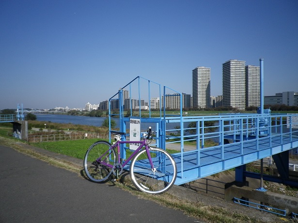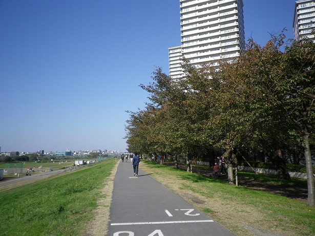 サイクリングロードだと信号がないし、堤防の上は眺めがいいので走っていてとてもいい気分。ジョギングしている人にはちょっと神経を使いますけど。