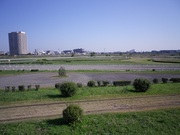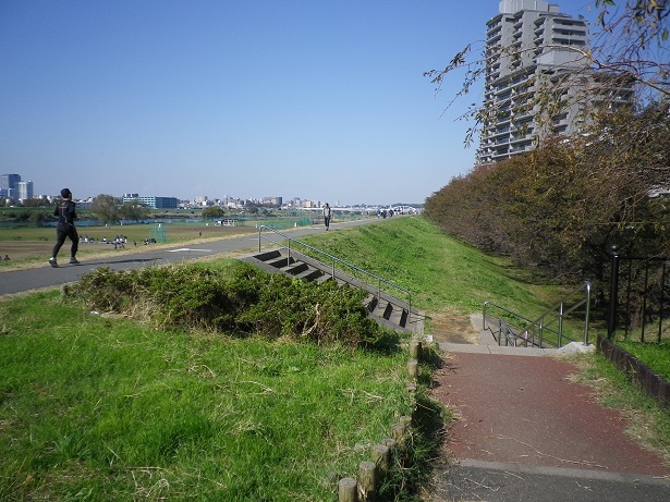 川崎側を下流へ走ったところ。向こうのマンションいは東京側