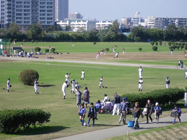 東京側に渡ったところには野球のグランドがたくさん。野球少年もいっぱいいます