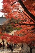 高雄神護寺山門の紅葉 茶店の紅葉 神護寺境内