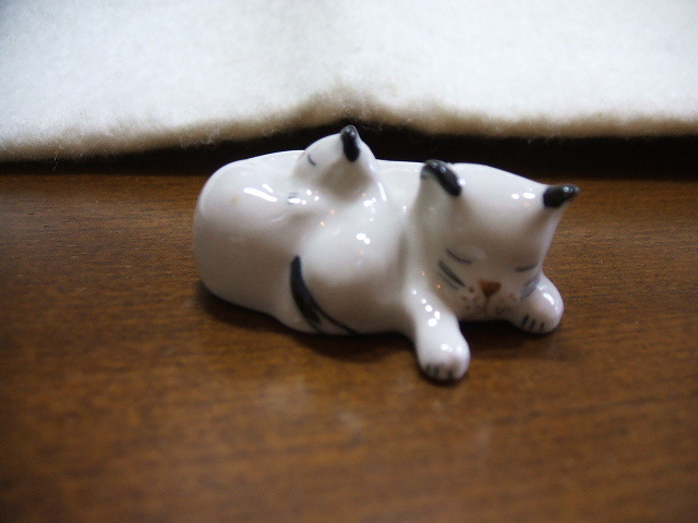 今日の猫ちゃんは置物。子猫が気持ちよさそうに親猫の上にくっついています。本当に猫は可愛いなあ。