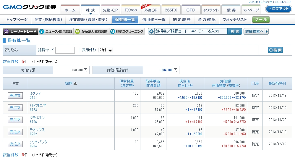 こんな感じでまだ売れてません・・・。FXと違ってこの辺は株の嫌なところですよね。参加者が限られているせいで、売買が成立せずなかなか損切りできない状況に陥ってます。2日連続のストップ安となったミクシィですが、果たして明日は・・・(; ・`д・´)ドウナルデショウカ…