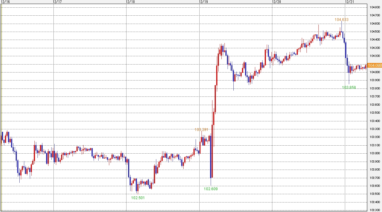 12月16日~12月20日の週。ドル円相場は1ドル=102.50~104.63円