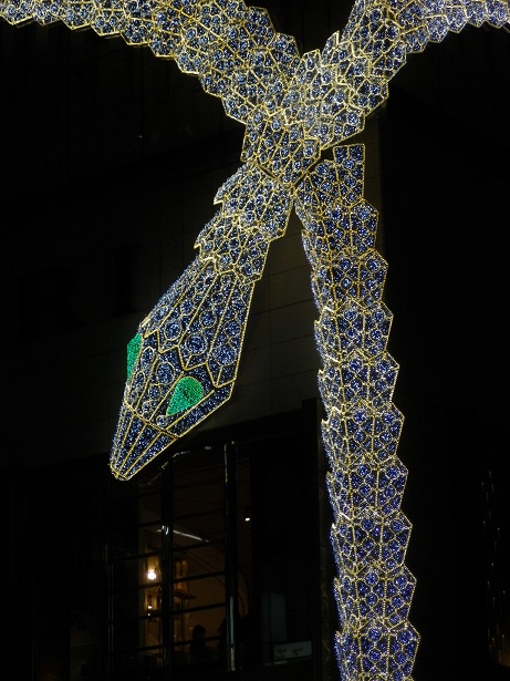 実は目的はBVLGARIのディスプレイ。今年は蛇だったので、来年の干支の馬に替わっていたらそいつを写真に撮って年賀状で使おうという魂胆。この蛇の年賀状はカミさんあたりには好評だったんですけどね。
