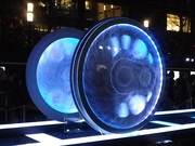 電車の車輪やSLの動輪をモチーフにしているようです。ときどき蒸気を上げたりも。