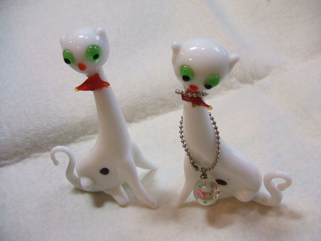 今日の猫ちゃんはガラス製。首のネックレスは頂き物のストラップでした。猫ちゃんの首飾りにしました。
