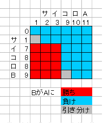 Aの目が10,11の場合も同様に勝てる目が無いので、