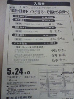 基調講演は大和証券グループ本社社長、三井住友銀行頭取、三菱東京UFJ銀行頭取の3本。
