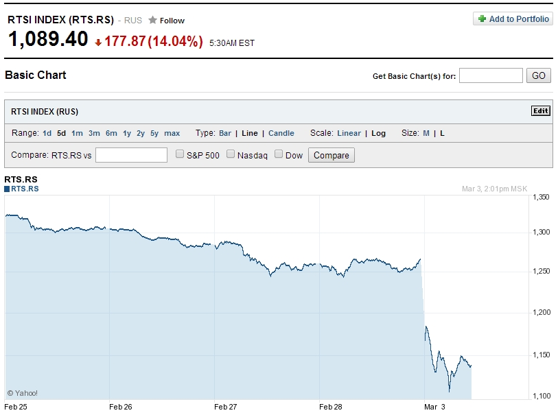 いきなり軍事介入の動きを見せたかと思ったら、今度はあっさりと対話のテーブルにつく模様ですが、この背景にはいきなり大守勢に回ることとなったロシアの経済事情というのもあるかもしれません。あるいはもともとの狙いがクリミア半島だったか、もしくはその両方か・・・(;=´З=)ウムゥ…