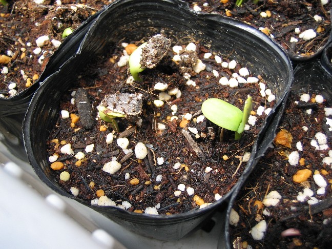 食用ヒマワリのほうも芽が出てきました。ちょっと感動。