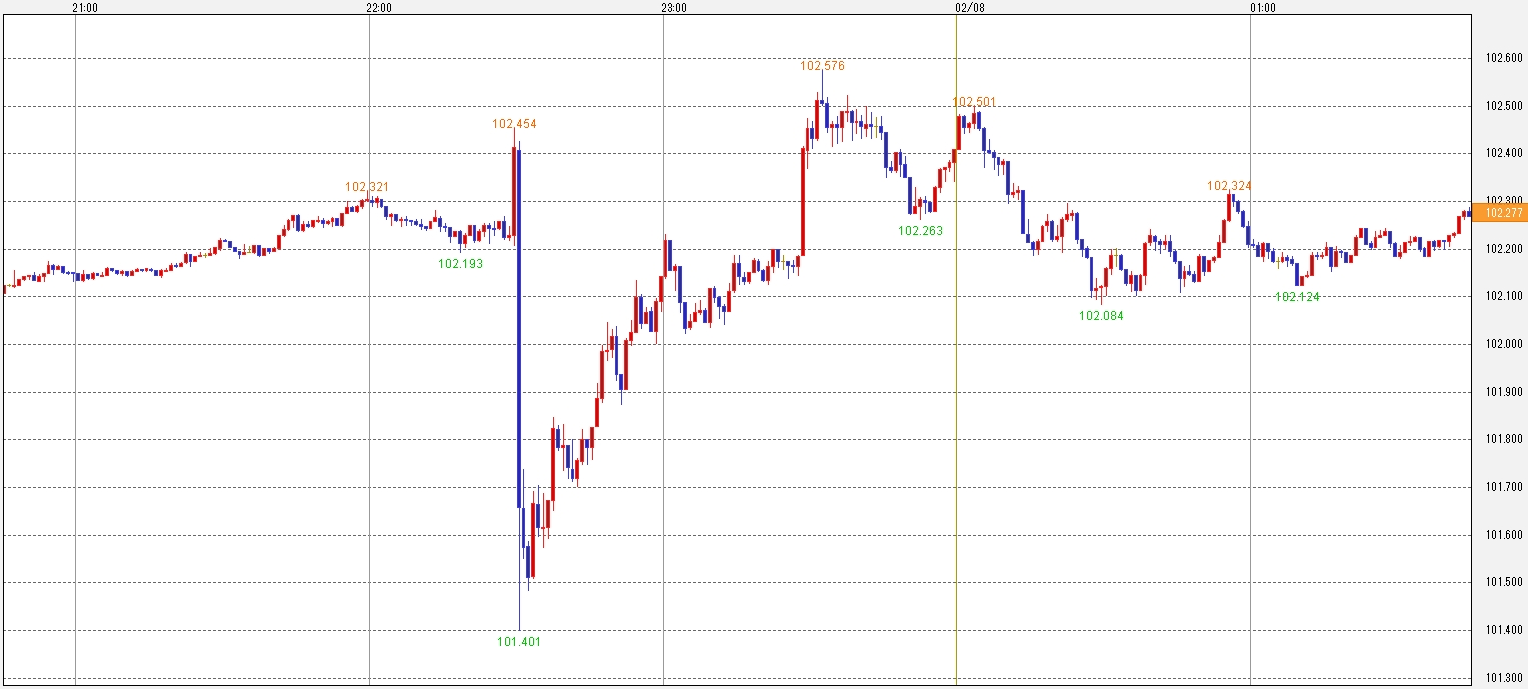 そして、値動きとしては発表があった直後は、この弱めの結果を受けてドル売りとなりましたが、徐々に値を戻して結局は全戻しというパターン。これは株式市場にとっては雇用統計が弱い結果となったことで今後の金融政策において、少なくとも緩和縮小ペースが加速することはないだろうのと見方が支配的となり、株高となったことで徐々に買い戻されたことがこういった動きを生み出しました。