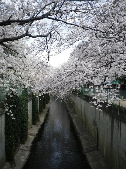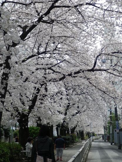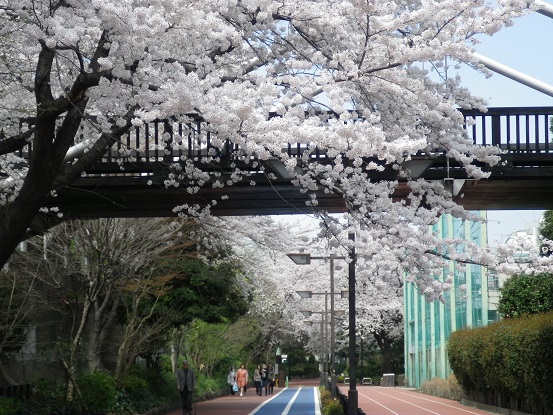 呑川べりの桜。新幹線と中原街道の間、各所に咲いています