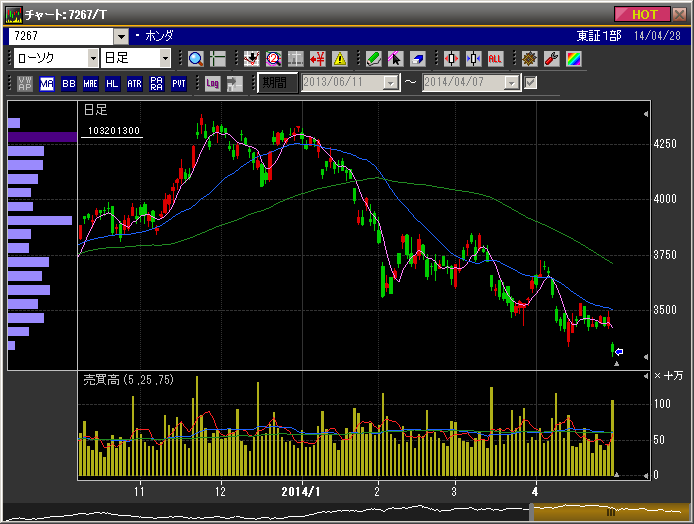 今日はこのホンダの動きが全体相場のムードを悪化させた。