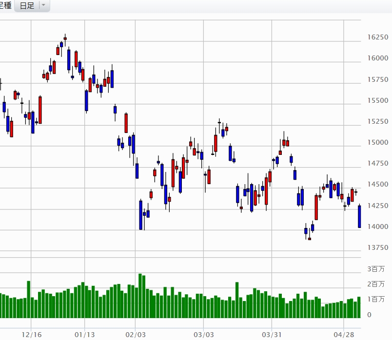 相場全体では、ウクライナ問題やら消費税増税での経済の冷え込みやら何やら言ってが急落しますが、