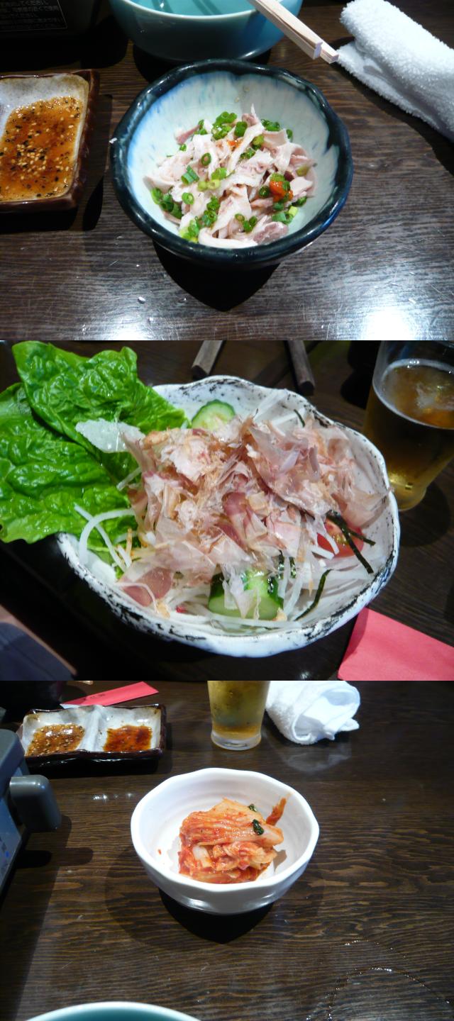 …っと言うわけで、まずはお通し(写真左上)こりこりした歯ごたえで…これは何だろう?モツを湯がいた物かな?正体わからずf(^^;)