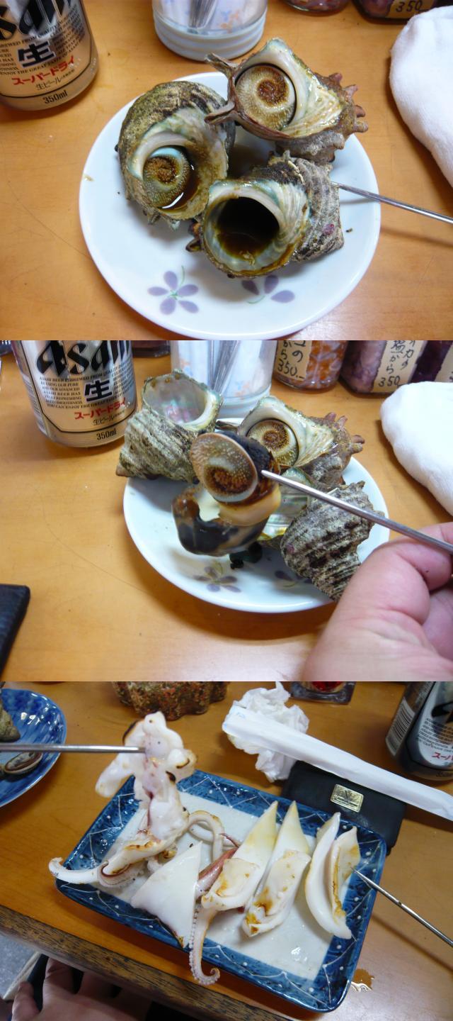 あっ!イカの塩焼きも出てきた(写真右下)新鮮なサザエとイカ焼きにビール、最強ですね(^p^)