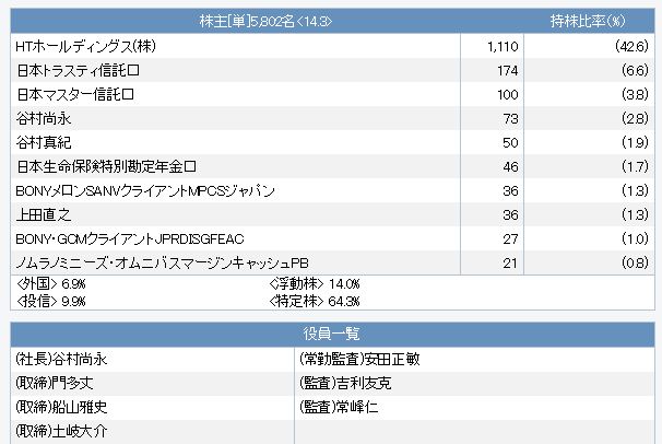 持株比率:6月に谷村尚永社長個人分の大半を、HTホールディングス(株)に移した。