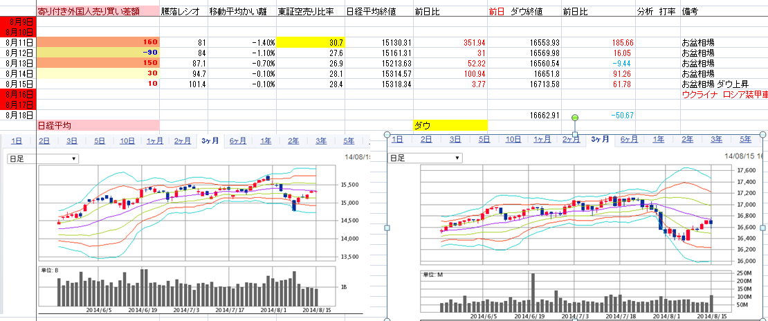日経は相変わらずまぬけな動き。ダウの様子見みたいな感じ。