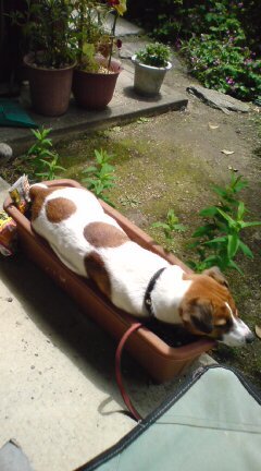 ネコちゃんは狭いところが大好きだったりしますが、ワンちゃんで、はまる子は珍しいですねぇー…。