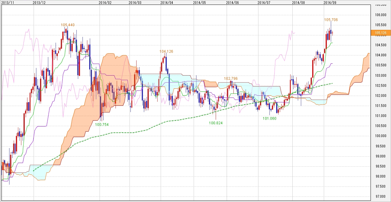 とりあえず現段階では、先週末に発表された(米)8月雇用統計の非農業部門雇用者数が+14.2万人(予想:+22.5万人)と大幅に下振れする結果となったにもかかわらず105円台へ持ち直しています。