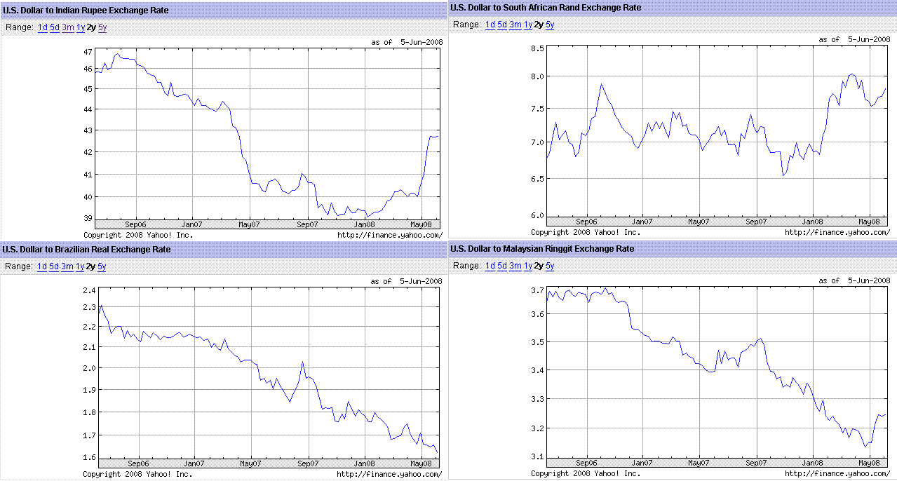 うーん、暗雲が立ち込めてきたような。インドなんかは、原油を輸入に頼っているので、今の原油高は辛いんですよね。原材料高で経済が弱体化することが懸念されて、通貨もドルに対して売られています。ブラジルは、資源国なので株も通貨も強いです。