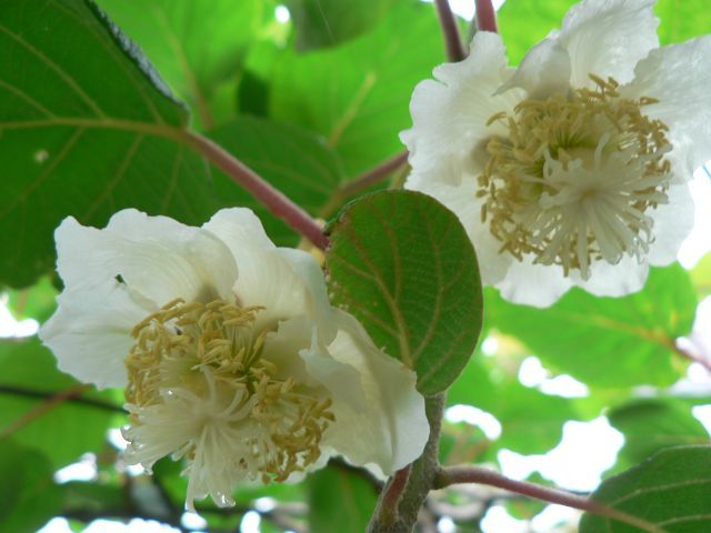 キュウイの花、一つひとつ見ると清潔感があって可愛いらしいです。