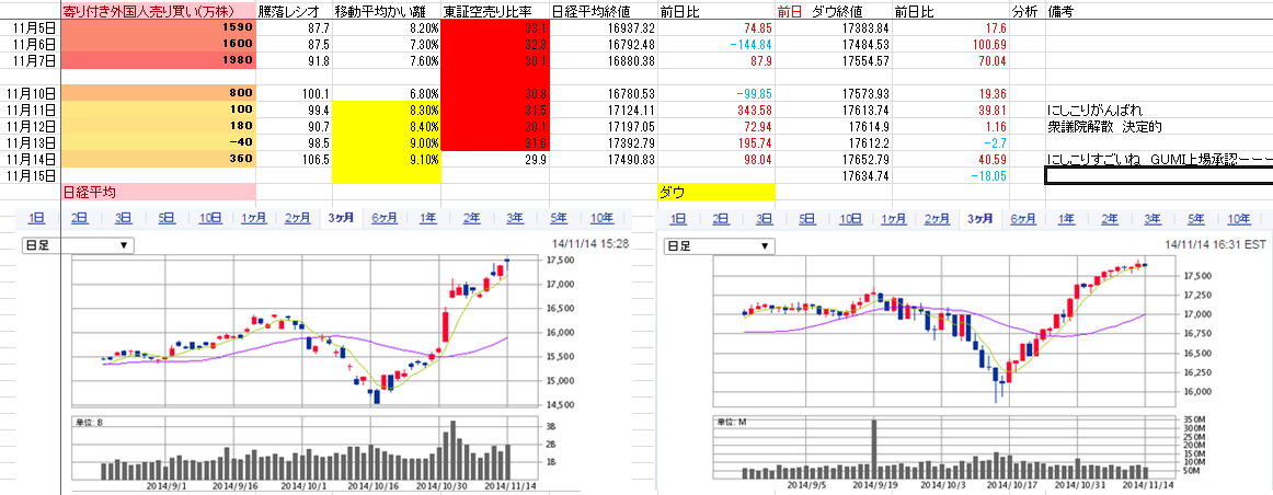 しかしながらデータを見てみると若干の過熱感あれど、そこまでエネルギーをため込んでいるようにも見えない。しばらくうじうじした相場なのかなあと思っています。 が、書いた通り、材料ひとつでこういう相場はガラッと雰囲気が変わる。そして、今からまた上に行く材料より下の方が出しやすいので、自信のない方は一度相場から距離を置いて動き出すのを待つのが得策かと。